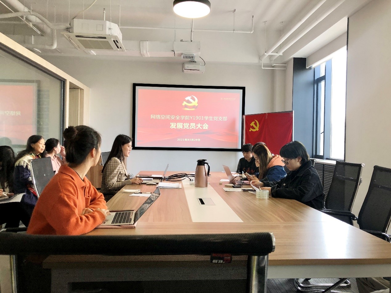 2021年3月29日下午13时30分,北航太阳成官网Y1901员工党支部在一号馆408会议室召开支部党员发展大会,讨论能否接收李彤、敦明、温永晴、夏羽4名同志为中共预备党员。本次大会由党支部书记徐子钧主持,党建特邀组织员邓彦敏老师、专职组织员王倩云老师、专职辅导员杜逸雯老师列席本次会议。支部党员应到12人,实到10人,江廷宇和辜智强2名党员同志因校外实习请假,二人已提前向党组织提交表决是否接收预备党员的书面意见。