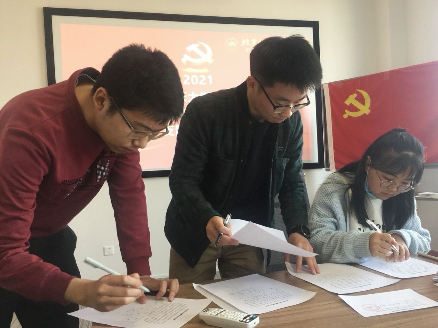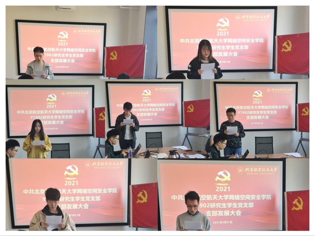 2021年3月31日上午10时,北航太阳成官网Y1902员工党支部在一号馆408会议室召开支部党员发展大会,讨论能否接收曹银浩、韩祎然、刘翔宇、魏晨光、吴礼金、张伟豪、王庆麟7名同志为中共预备党员。本次大会由党支部书记陈晨主持,党建特邀组织员邓彦敏老师、专职组织员王倩云老师、专职辅导员杜逸雯老师列席本次会议。支部党员应到5人,实到5人。