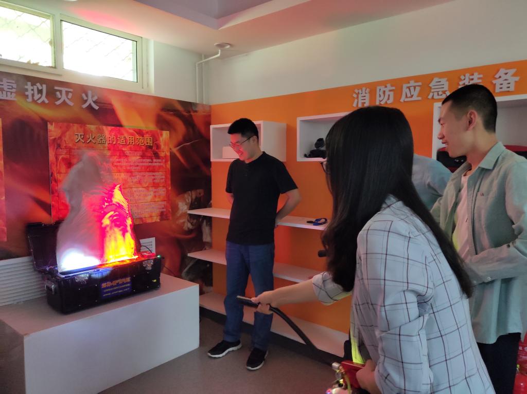 体验馆第一部分是急救自护和心肺复苏的训练,讲解员向同学们示范如何正确为患者做心肺复苏,同学们轮流尝试,体会到其难度之大的同时也真正掌握了技巧。接下来是地震体验,通过观看地震来临时的模拟视频和体验模拟地震晃动,同学们真实地感受到了地震的威力。最后是火灾逃生,同学们首先进行了烟雾逃生的训练,在模拟的火灾烟雾环境中,同学们需要寻找正确的撤离高度,掌握“八层”湿衣物捂住口鼻等逃生技巧。讲解员还向同学们示范四种绳子打结方法,增加摩擦力,帮助我们从窗外安全撤离到地面或安全楼层。