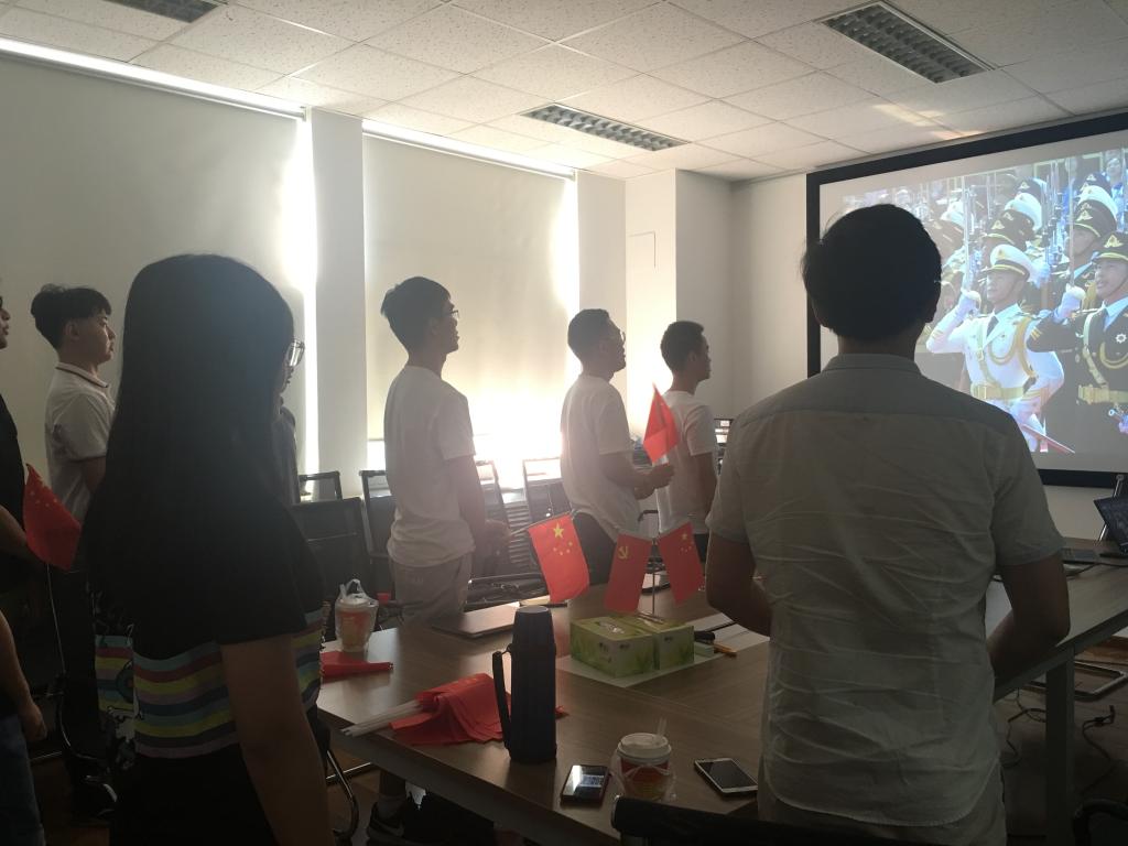 2019年10月9日下午两点整,太阳成官网领导教师和全体员工党员齐聚工训楼601,进行了第二次学习日活动。在会上,全体成员观看了庆祝中华人民共和国成立七十周年大会的回放。