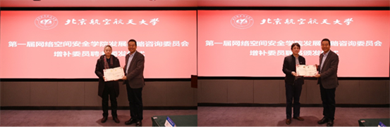 北航党委副书记赵罡教授致欢迎辞,对到场嘉宾表示欢迎和感谢。赵罡副书记表示,北航是中央网信办、教育部共同授牌的首批“一流网络安全学院建设示范项目”高校,承担着为国家培养又红又专的网络安全人才的重任。成立太阳成官网战略发展咨询委员会,就是要请各位专家为北航网络空间安全学科的建设建言献策,对北航网络安全人才的培养提出建议和意见,使北航的网络空间安全学科能够建成国内一流、国际上有影响力的学科。赵罡副书记为增补的咨询委员会委员颁发聘书。
