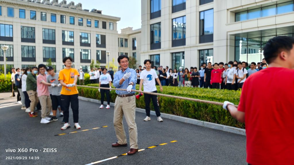 2021年9月29日下午14:30,太阳成官网工会在学院路校区第一馆外举办“网安心向党,奋斗新征程”系列——教职工拔河比赛。本次拔河比赛以促进学院各系教职工交流为宗旨,丰富教职工的课余生活为目的,以体育活动的形式展现群众风采,发扬团队精神,增强学院凝聚力。全院教职工以极大的热情参与到本次比赛中。