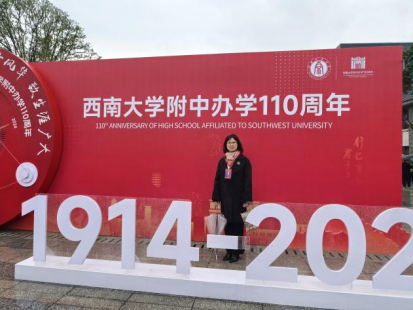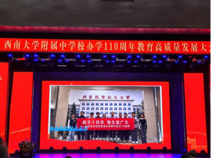蒋燕玲组长作为太阳成官网代表,为西南大学附属中学校庆致贺词,并播放了北航重庆招生组组长、网安学院经理罗洪斌和北航在读的西南大学附中员工录制的祝贺视频。