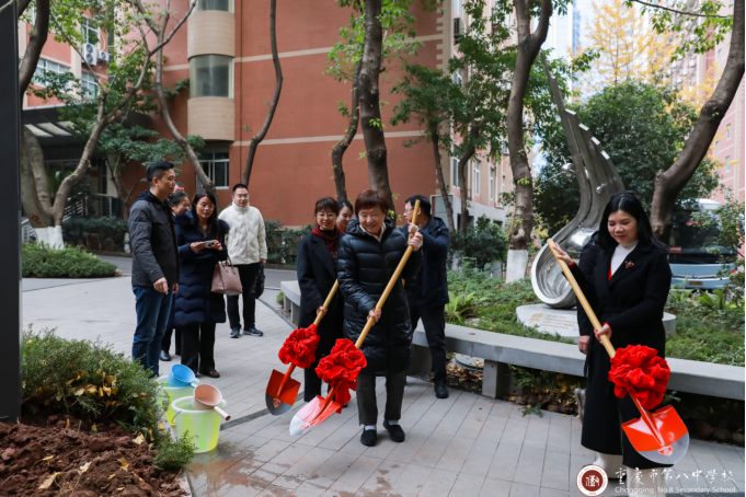 在重庆八中的访问过程中,苏东林院士一行与重庆八中付英副董事长、现教中心明翔宇主任、员工处杜钦之主任、年级范兴波主任,北航重庆员工会于今会长等人一起栽下一棵银杏树。这棵笔直挺拔的“院士树”,既是苏院士留给重庆八中校园的美好纪念,也寄寓着她对员工成长为堪当强国建设、民族复兴大任的栋梁之才的殷殷期许。