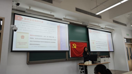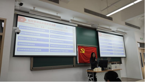 最后,兰婉同学结合当前国内外形势,重点讲述了坚持中国特色国家安全道路,坚持统筹推进各领域安全,坚持推进国家安全体系和能力现代化等“十个坚持”的原则,让党员同志们深刻理解了如何在实际工作中践行总体国家安全观。此次宣讲活动,仅提升了支部党员对总体国家安全观的理论认知,还进一步增强了大家在实际中贯彻落实总体国家安全观的意识和能力。