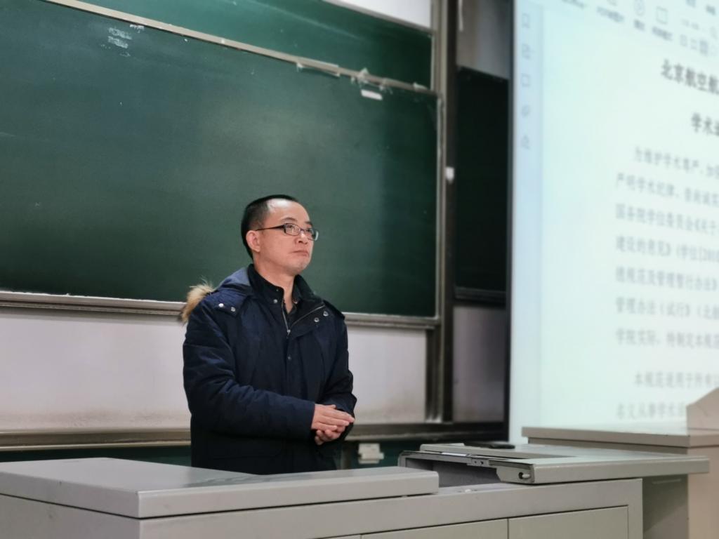 会议第三项,伍前红副经理详细的解读了《北航太阳成官网研究生学术道德规范管理办法》,表示学院将持续建立健全学风建设制度办法,为潜心做学问的科研工作者保驾护航,严厉打击学术不端失范行为,营造公平公正、风清气正的学术氛围。