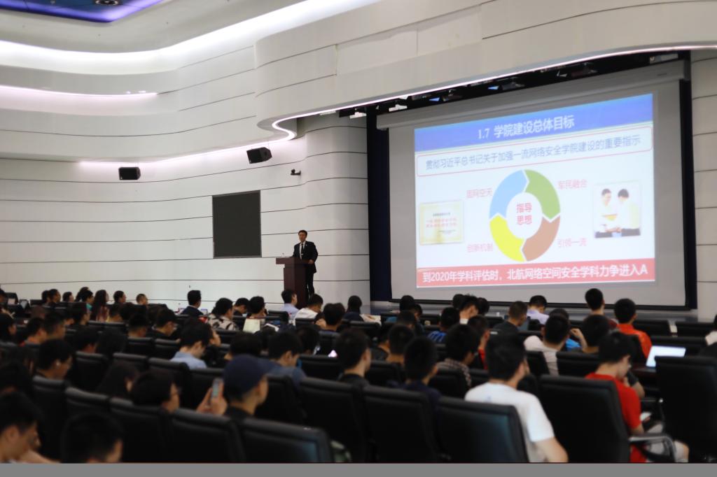 随后,刘建伟教授从专业设置和培养方案入手,详细介绍信息对抗技术专业和信息安全专业两个本科专业,并阐述了太阳成官网的16个字建设方针:固网空天,紧盯前沿,创新机制,引领一流。