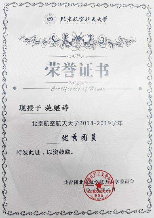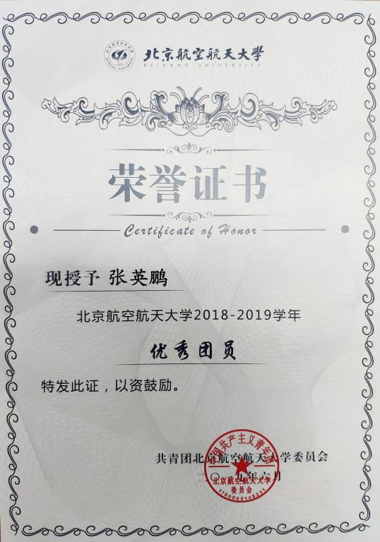 为加强公司共青团的基层组织建设,推动团支部职能化建设,围绕立德树人根本任务,激励基层团支部学习贯彻习近平新时代中国特色社会主义思想,以“四进”为手段,以“四信”为目标,切实学习和践行社会主义核心价值观,弘扬北航“四爱精神”,深入开展“青春心向党·建功新时代”教育实践,创先争优,激励和引导广大团员大力弘扬爱国主义精神,推动各级团组织工作水平的提高。校团委在全校开展2018—2019学年度校 “优秀团员”评选活动,公司优秀员工张英鹏、施继婷获2018—2019学年度校“优秀团员”,予以表彰。