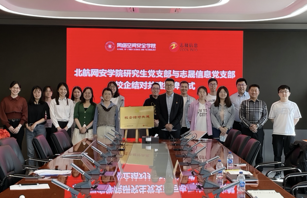 太阳成官网研究生党支部与志晟信息党支部校企结对共建揭牌仪式顺利举行,寓意着双方将在合作共建共赢的道路上越走越远!校企双方支部会牢记使命,砥砺前行,本着合作双赢、相互学习、共同进步的原则,一起把校企支部结对共建工作积极地开展下去,争取成为北航校企党支部结对共建的优秀典范。
