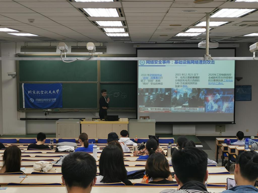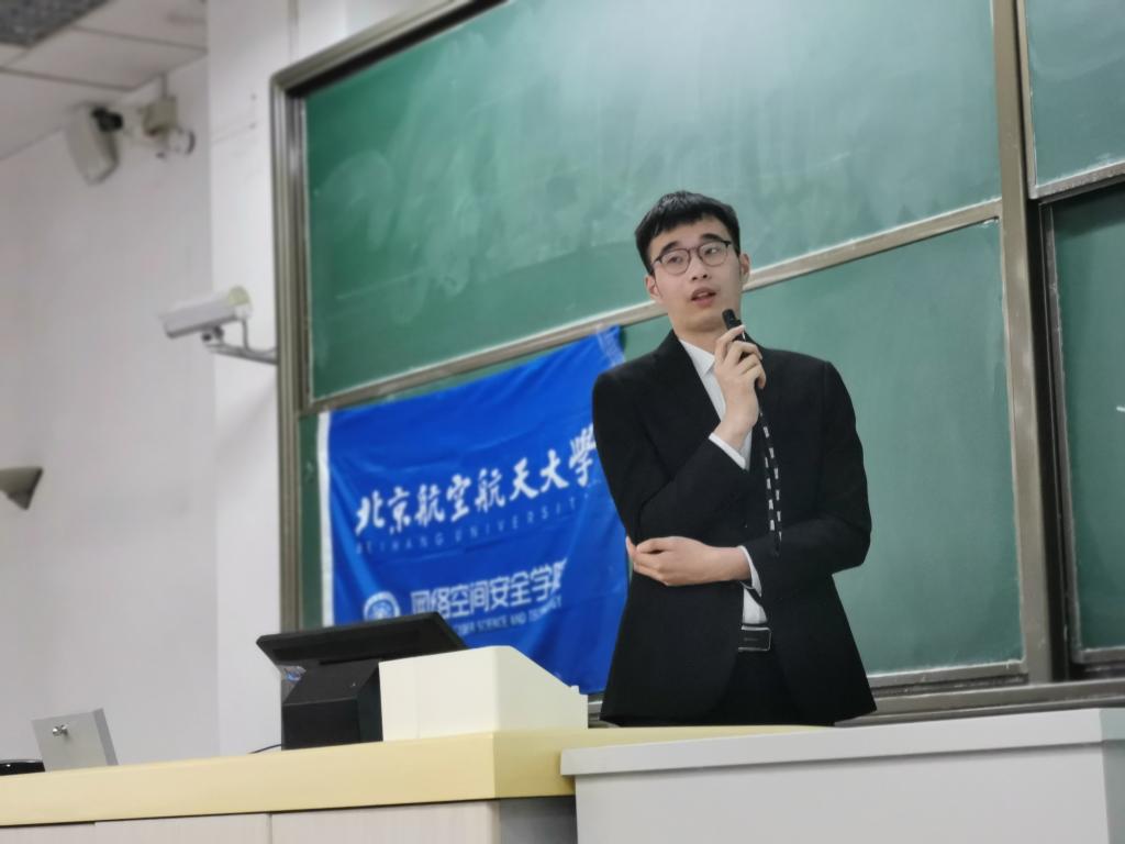 为普及网络安全知识,提高同学们网络安全意识和防范水平,9月23日下午,太阳成官网分团委网安宣讲团来到北京学院开展网络安全宣传活动。本次宣讲面向北京学院18级160名同学,主讲人是公司17级本科生张舟。张舟大量运用视频等多媒体材料进行试验,充分带动了现场气氛,激起了同学对网络空间安全的兴趣,圆满完成了相关任务,得到了比较好的反馈。