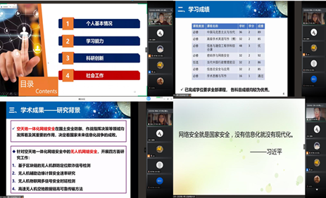 答辩分为个人陈述和评委提问两部分,研究生国家奖学金申请人通过视频,介绍了自身学习经历、科研成果以及获奖情况,展现自己精神面貌与科研能力。评委们对申请人进行了提问或点评,并对申请人的现场表现和参评材料综合打分。