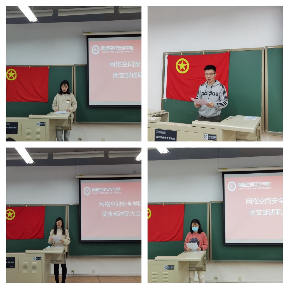 研究生团支书战姝宇、徐子钧、陈晨、林婉霜先后依次代表各自班级团支部进行述职。4名团支书先后从本团支部概况、工作内容、团支部建设成果、存在的困难以及解决思路、2021年团支部工作计划等方面进行了详细的汇报,并结合自身工作进行经验、心得的分享与交流。